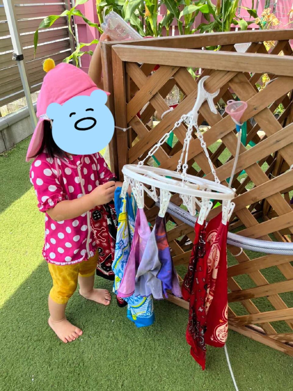 洗濯バサミを上手に開いて綺麗に干せました👏