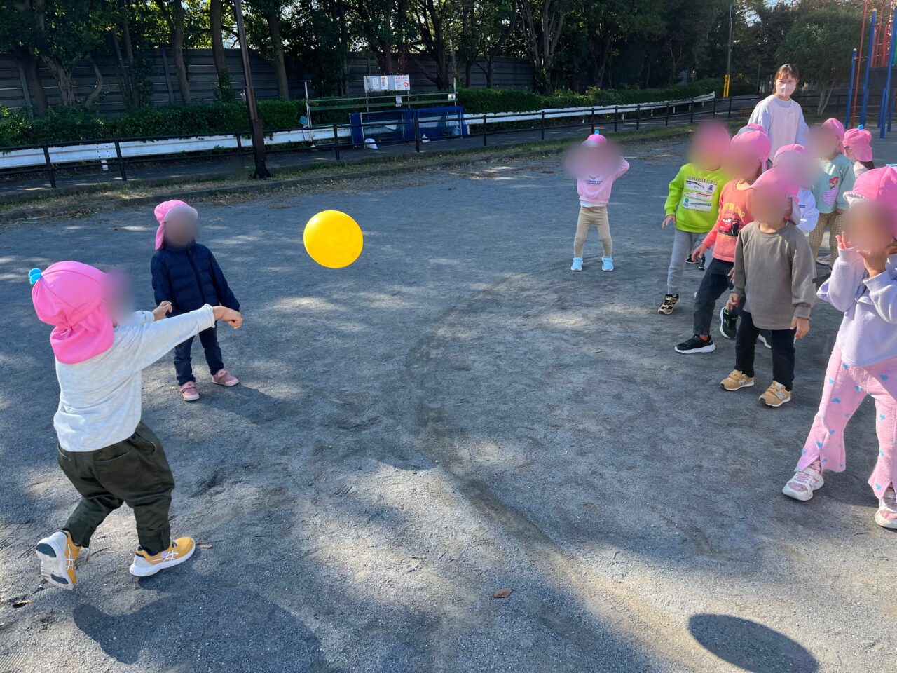 「顔に当たったら嫌だよね」「どうする?」と話し合い、顔と頭は狙わない(当たってしまってもセーフ)というルールを子どもたちで決めました😊