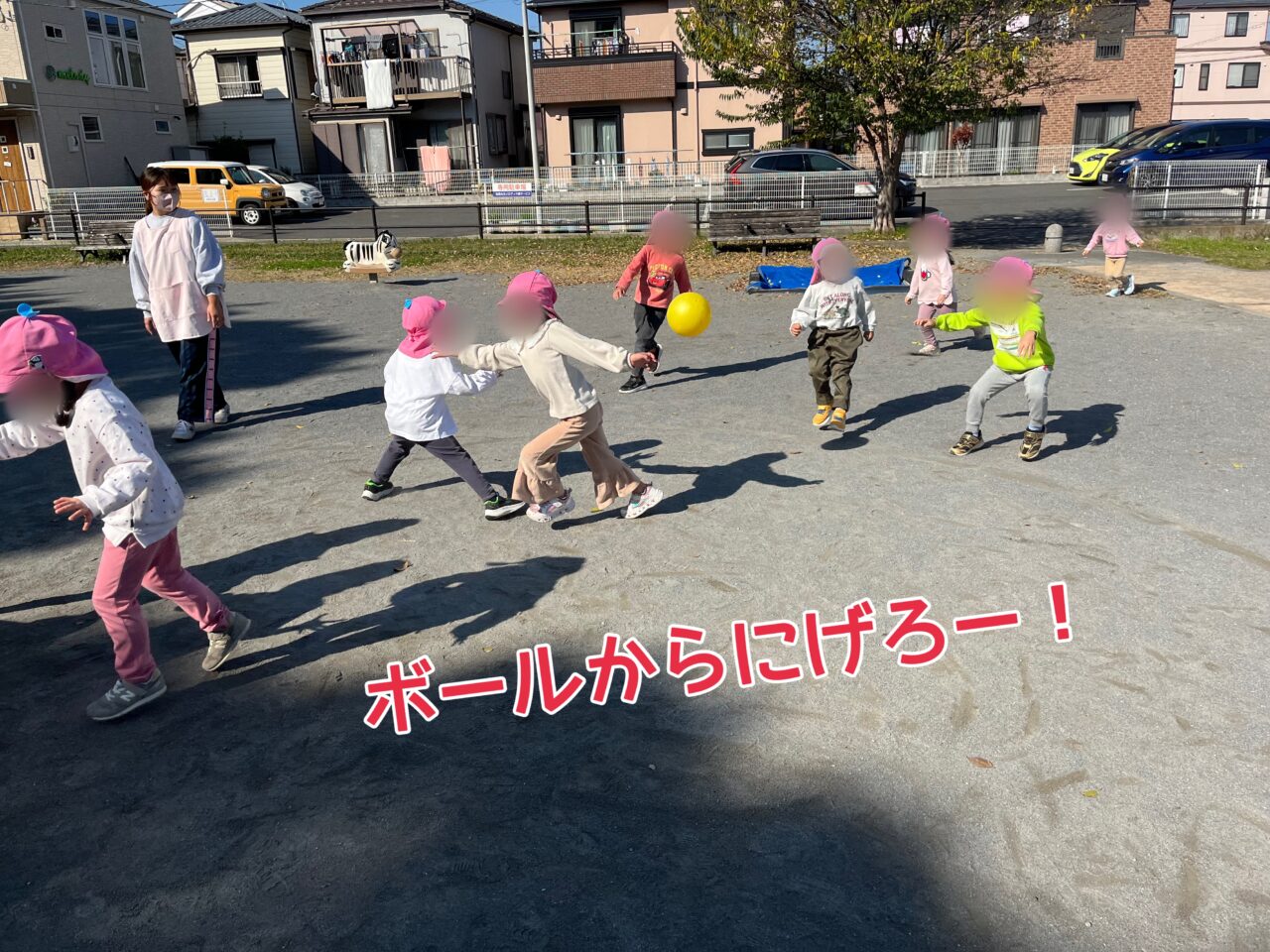 わくわく組(3・4・5歳児)では、みんなで中当てをして遊ぶのがブームです!